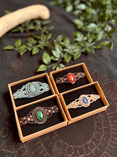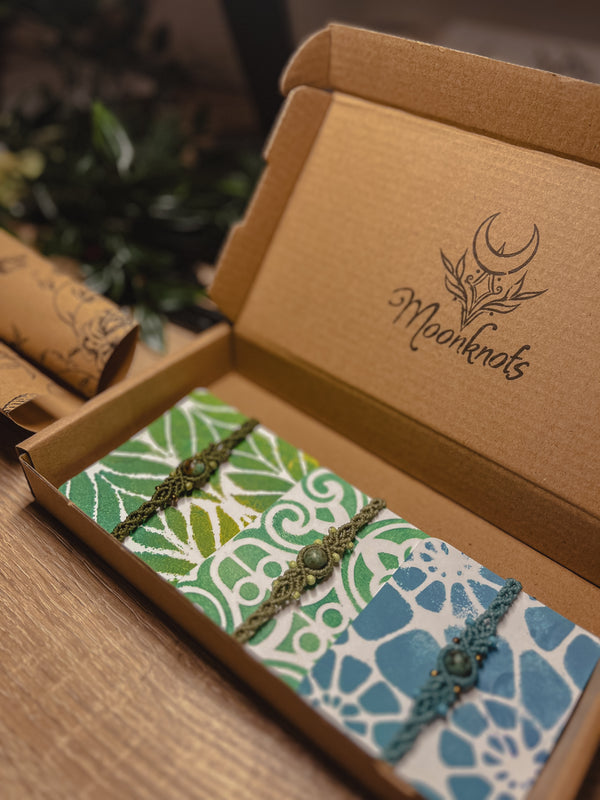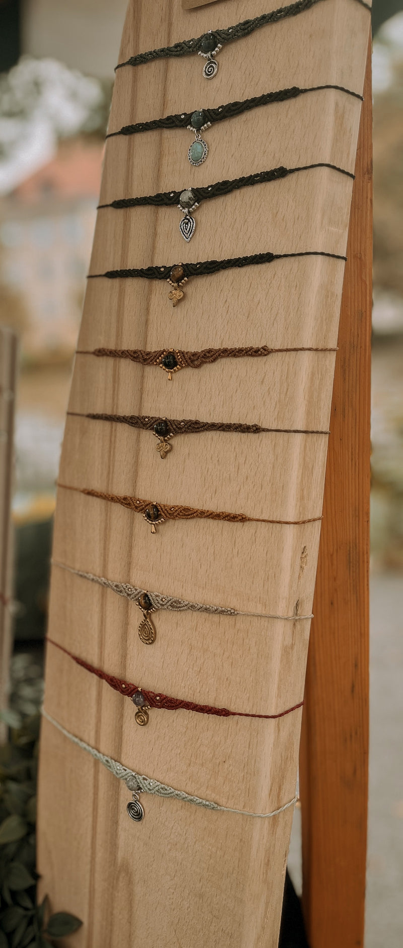 All pieces are handmade using carefully selected threads, cords, and decorative elements chosen for durability, comfort, and a natural feel. Each material is selected individually to match the character of the piece, ensuring long-lasting wear and color stability.